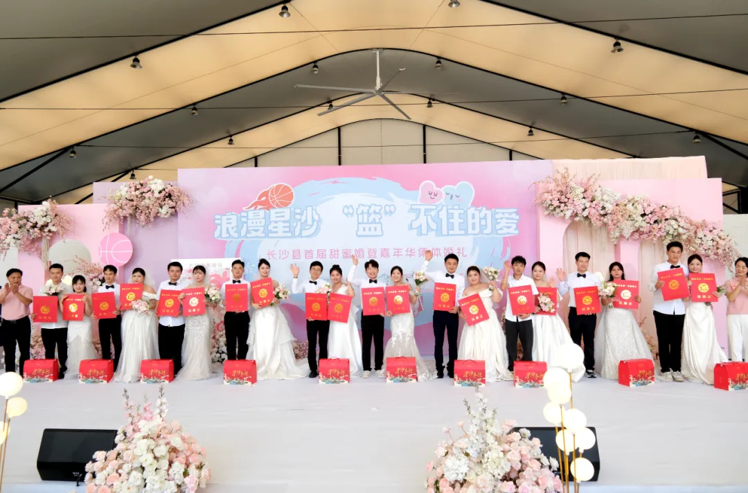 2025年8月29日,由長沙縣民政局策劃發(fā)起的“浪漫星沙·‘籃’不住的愛”首屆甜蜜婚登嘉年華集體婚禮在長沙縣婚姻登記服務(wù)中心舉行,10對新人用一場簡約而不失莊重的儀式,踐行文明婚俗新風(fēng)尚,長沙市文明家庭、金婚夫妻陳小明、吳秋燕夫婦帶領(lǐng)新人們宣讀結(jié)婚誓詞,現(xiàn)場還為新人們發(fā)放了《移風(fēng)易俗倡議書》等宣傳頁,有效倡導(dǎo)了崇尚文明新風(fēng),喜事新辦、婚事簡辦理念。