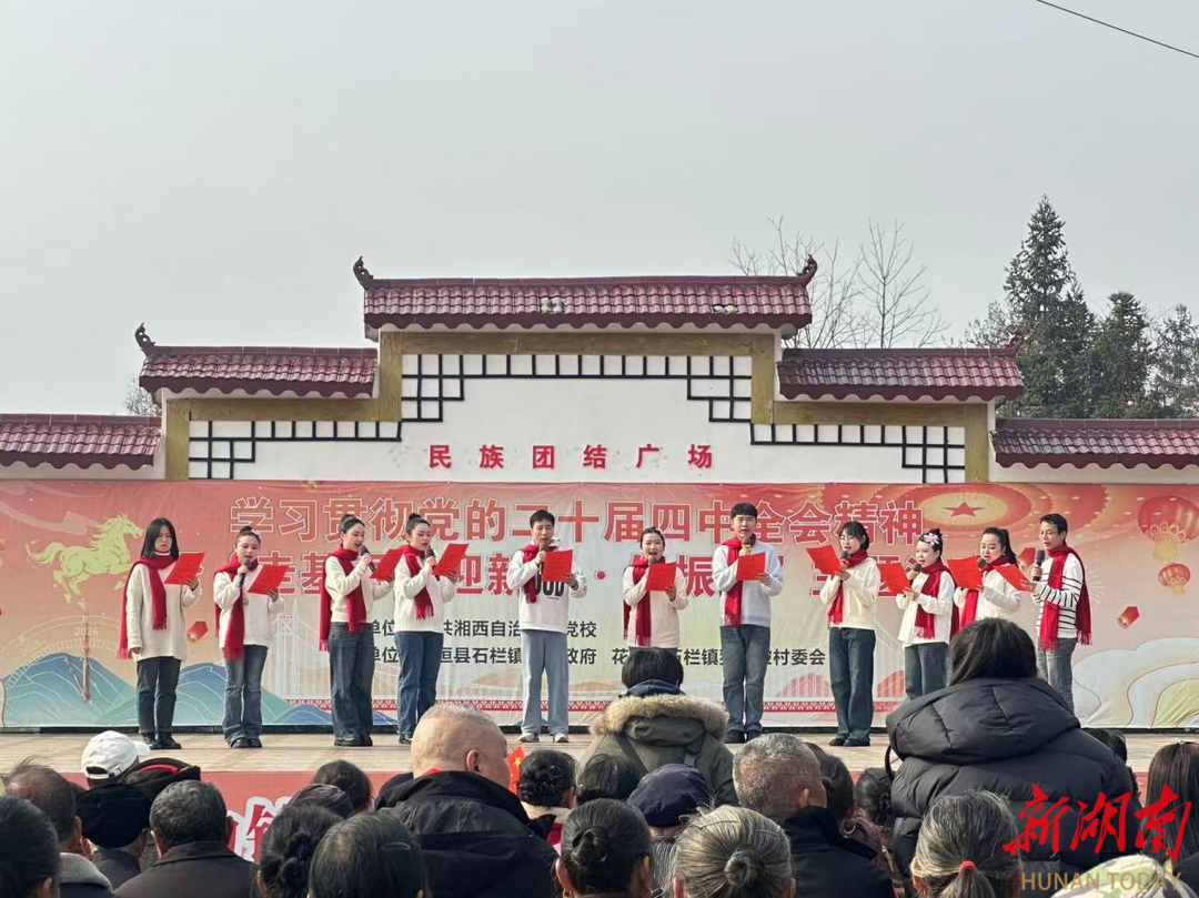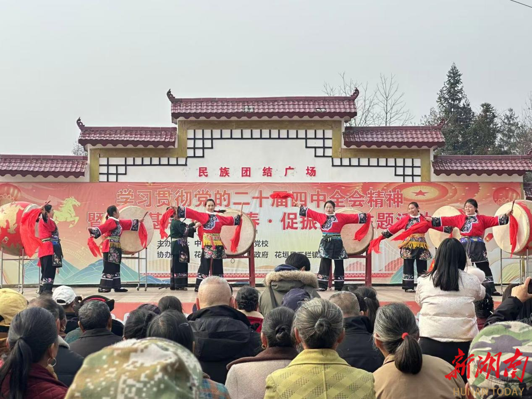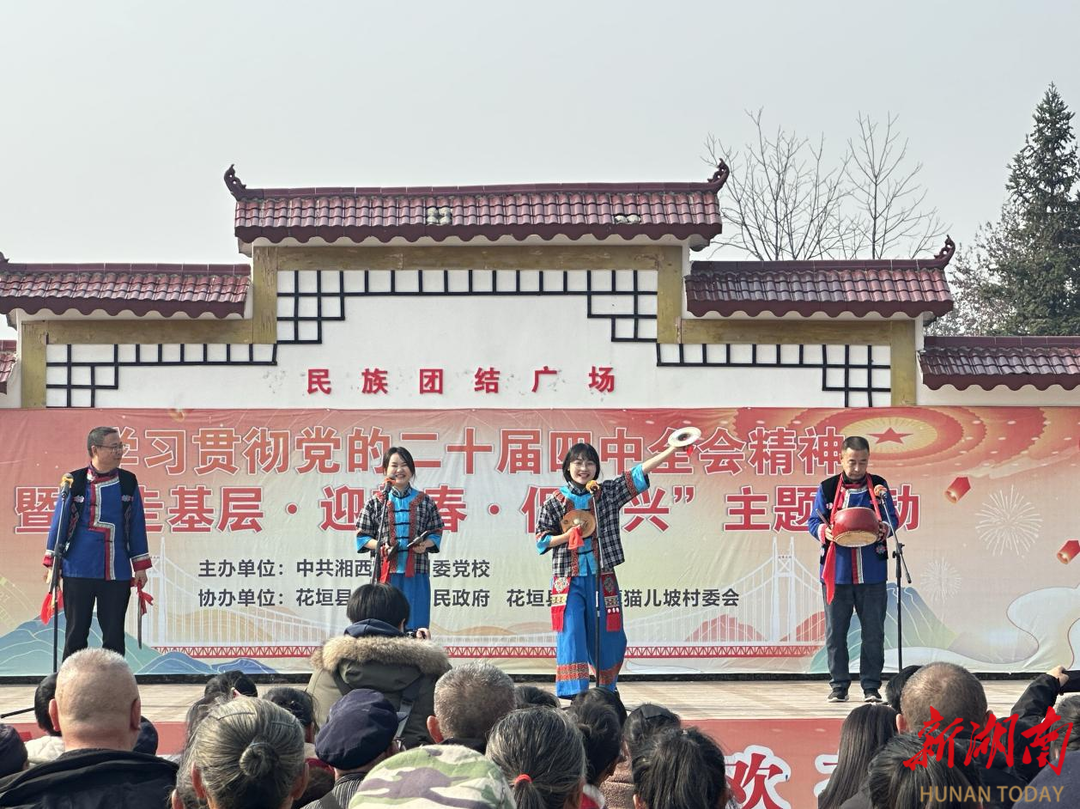 冬日暖陽,暖意漫過苗家田壟。1月17日,湘西土家族苗族自治州花垣縣石欄鎮(zhèn)貓兒坡村的文化廣場上鼓聲激昂、舞步飛揚、歌聲嘹亮。湘西州委黨校舉行學(xué)習(xí)貫徹黨的二十屆四中全會精神暨“走基層·迎新春·促振興”主題活動。