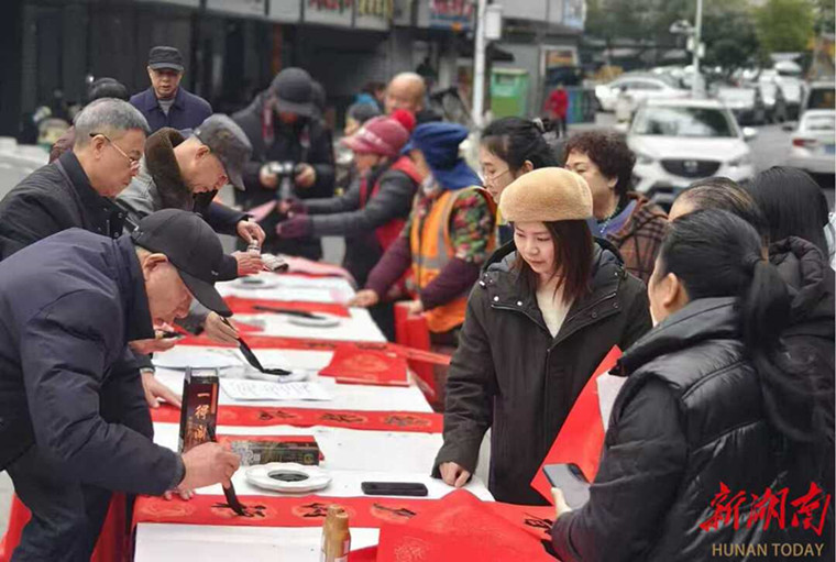 年味漸濃,福暖人心。1月29日上午,衡陽市蒸湘區(qū)聯(lián)合街道在張家山公園前坪開展“我們的節(jié)日·春節(jié)”迎新春送春聯(lián)活動,以筆墨為媒,以祝福為禮,免費為轄區(qū)居民書寫、贈送春聯(lián)和“福”字,將濃濃的新春暖意與美好的節(jié)日祝福送到群眾心坎上,提前營造喜慶祥和的春節(jié)氛圍。
