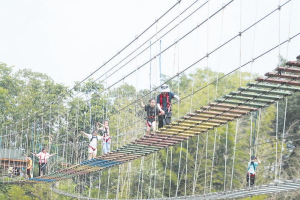 在茅太新村農(nóng)民公園,網(wǎng)紅吊橋是一道亮麗的風景。 資料圖