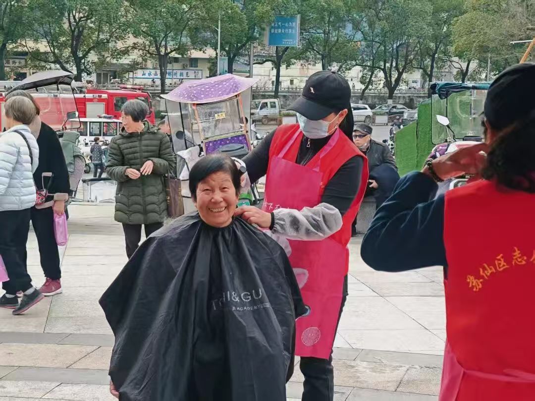 現(xiàn)場設置20余個特色攤位,暖心服務干貨滿滿。愛心義診區(qū),醫(yī)護人員提供健康檢查、咨詢服務,專業(yè)守護鄰里健康;愛心義剪區(qū)人氣高漲,理發(fā)師巧手修剪,讓老人們精神煥發(fā);文聯(lián)書法家被居民圍聚,揮毫書寫春聯(lián)福字,將新春美好期許送到大家手中。