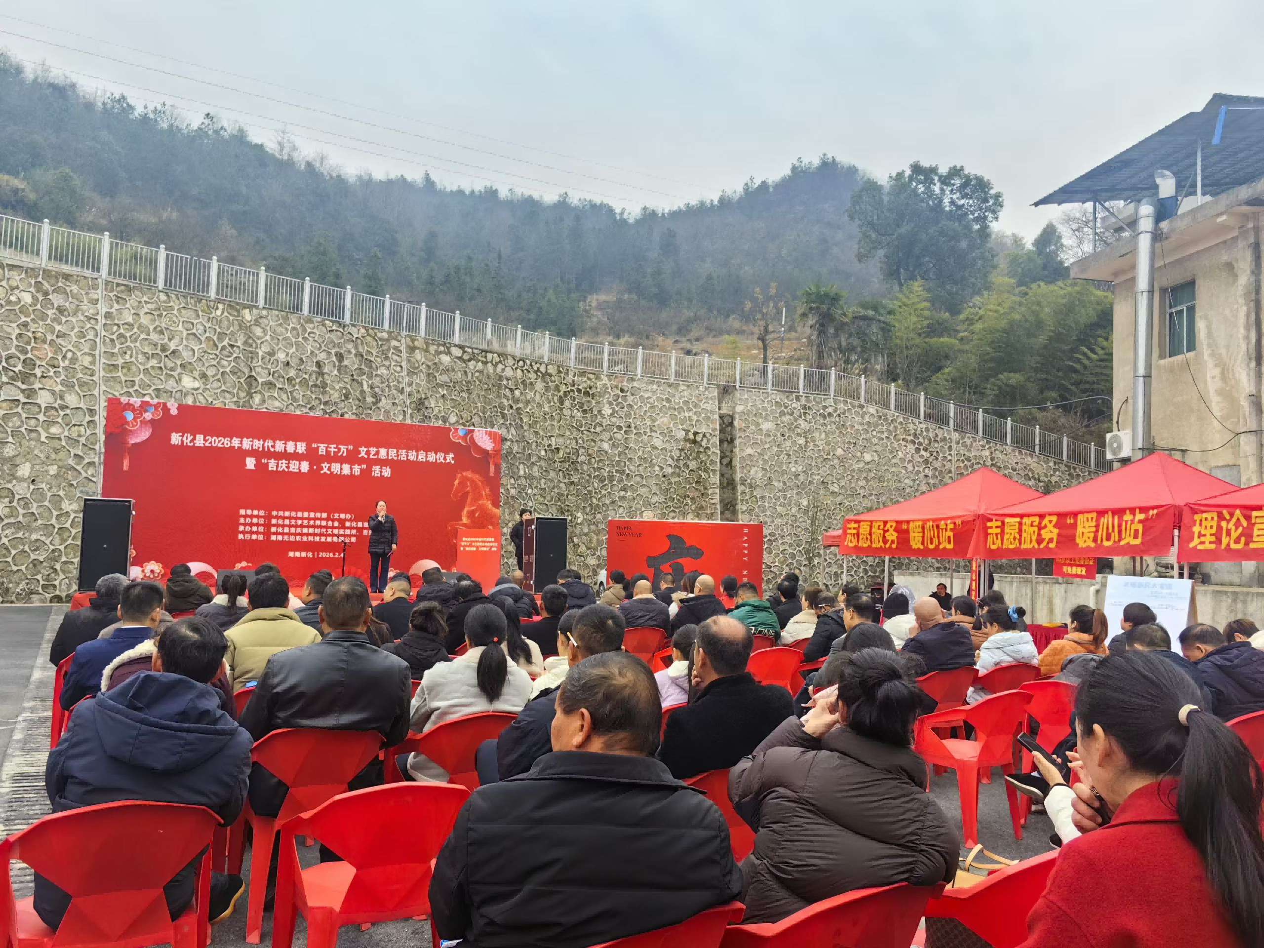 2月4日,新化縣新時(shí)代文明實(shí)踐中心聯(lián)合縣文聯(lián)、縣書法家協(xié)會(huì)、吉慶鎮(zhèn)新時(shí)代文明實(shí)踐所在吉慶鎮(zhèn)舉行2026年新時(shí)代新春聯(lián)“百千萬(wàn)”藝術(shù)工程文藝惠民活動(dòng)啟動(dòng)儀式暨“吉慶迎春·文明集市”活動(dòng)。(來(lái)源:婁底市文明辦 婁底文明網(wǎng))