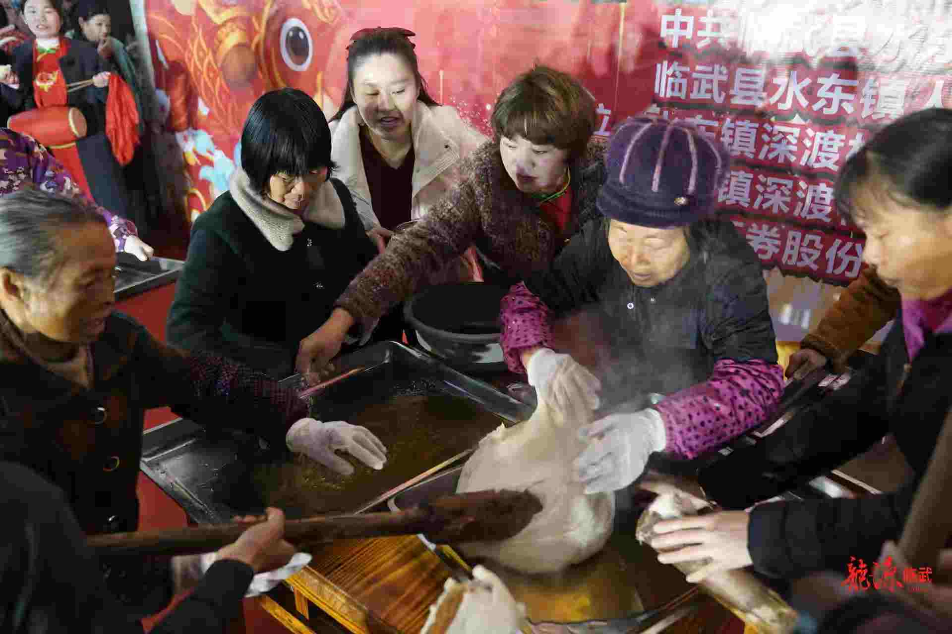 抖糍粑,這一古老的習(xí)俗,在臨武當(dāng)?shù)匾延?00多年歷史,不管是油炸黃糖勾芡,還是煮甜酒糍粑,都是一道獨(dú)特的美食,是村民將闔家團(tuán)圓、心甜意洽的美好愿景臼進(jìn)糍粑里的“舌尖上的鄉(xiāng)愁”。