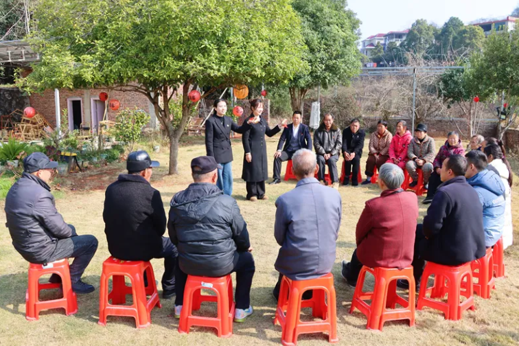 當宣講的場景從喧騰的集市轉入更為幽靜的農家院落,一種更深沉、更貼近土地脈動的交流便悄然而生。這里沒有音響設備的擴音,只有面對面呼吸可聞的距離;沒有整齊劃一的座椅,只有隨手拉來的板凳木墩。宣講員褪去“講師”的外衣,成為帶著政策“干貨”上門嘮嗑的“好鄰居”。