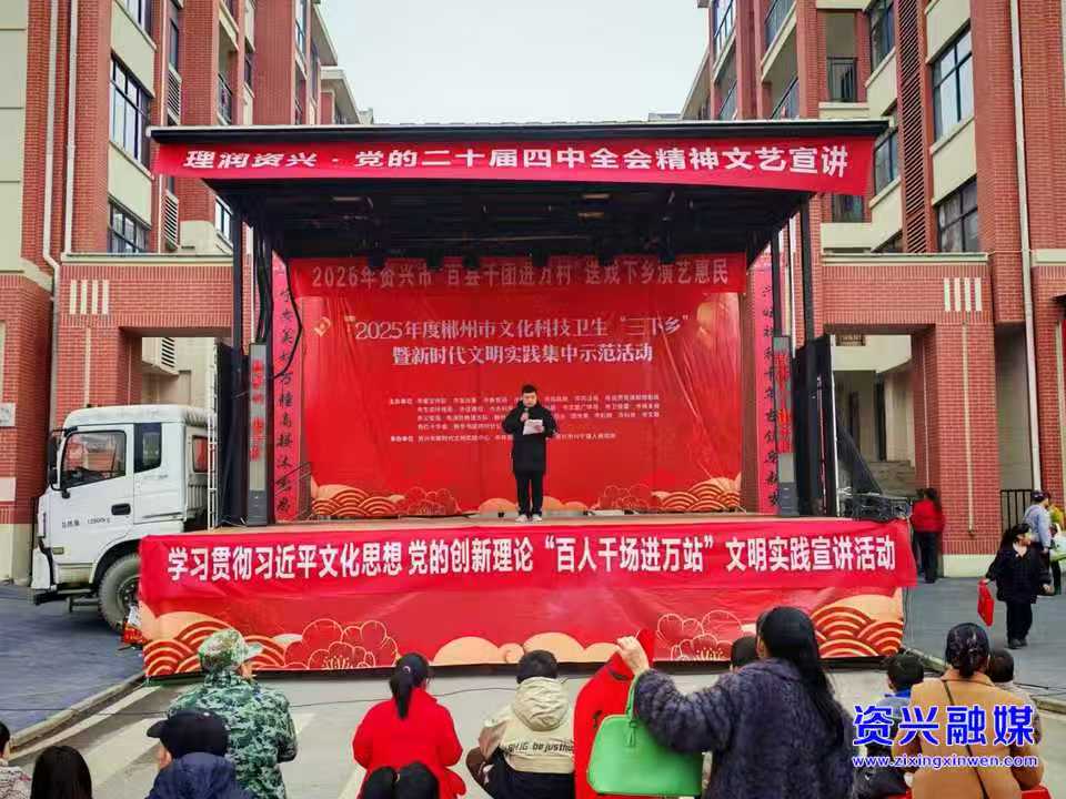 2月7日,郴州市黨的創(chuàng)新理論“百人千場進萬站”文明實踐示范宣講活動走進資興市興寧鎮(zhèn)興寧社區(qū)新時代文明實踐站,與2025年度市文化科技衛(wèi)生“三下鄉(xiāng)”暨新時代文明實踐集中示范活動同步開展,將黨的政策與暖心服務(wù)送到安置群眾身邊。