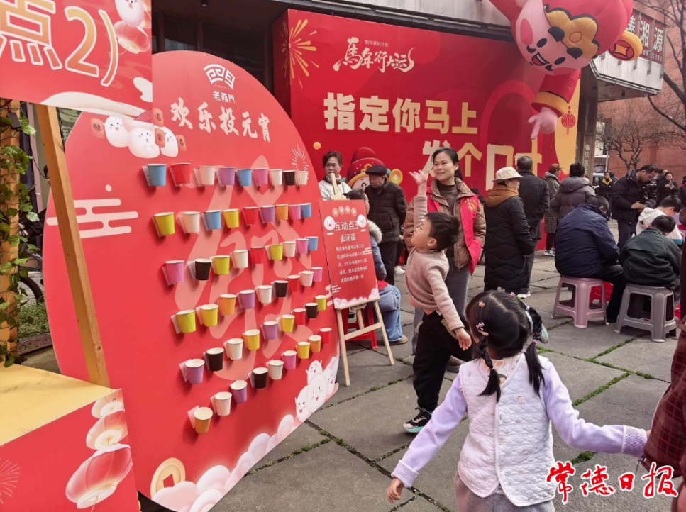 元宵節(jié)當(dāng)天,2026年常德市“曲韻元宵 情暖社區(qū)”學(xué)雷鋒紀(jì)念日主題志愿服務(wù)活動暨“學(xué)雷鋒·文明實踐我行動”主題活動啟動儀式在老西門火神廟廣場舉行?;顒蝇F(xiàn)場,“智慧猜燈謎”“巧手夾元宵”“好運投元宵”等游戲吸引了眾多居民參與。在商家互動區(qū),轄區(qū)內(nèi)的多家特色商戶設(shè)立了展示攤位,進(jìn)一步激發(fā)了消費動能。